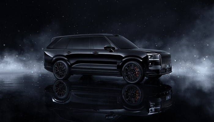 新车外观采用与极氪009相似的方正轮廓,前脸配备大尺寸竖条镀铬格栅和分体式大灯,整体风格令人联想到部分超豪华SUV。车身提供五种颜色选择,侧面线条平直,配备22英寸轮圈及独特的“天地门”对开式尾门设计。