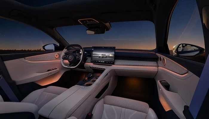 内饰布局亦延续现有设计,核心仍为悬浮式中控屏与三辐式方向盘。标准配置较为全面,涵盖18英寸轮圈、全速自适应巡航、皮质方向盘、方向盘加热、前排座椅通风加热、第二排座椅加热及256色氛围灯等功能。