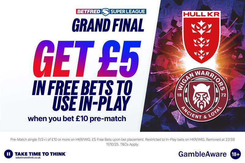 Betfred – Place a Pre-Match bet of £10 or more (odds 1/2+) on the Betfred Super League Grand Final and get £5 in Free Bets to use In-Play – CLAIM HERE*