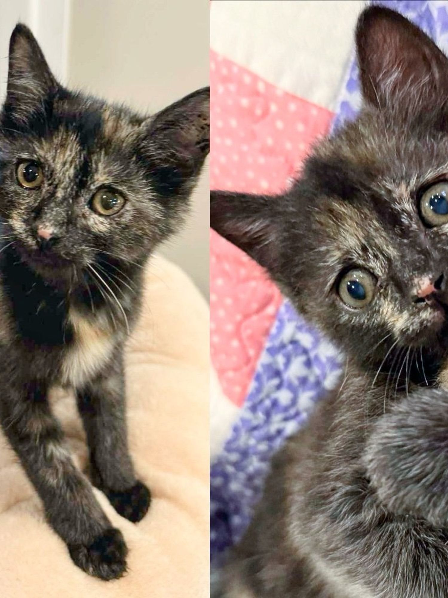 A tortie and a black-and-white kitten, the sole survivors of their litter, overcame every challenge and began to thrive.