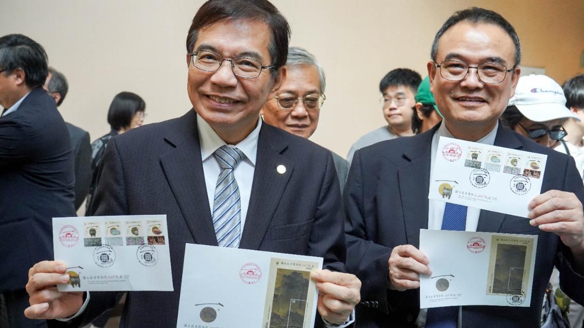 中華郵政董事長王國材致詞時指出,今年是故宮百歲生日,中華郵政明年也將邁入130歲,中華郵政和故宮有許多共同點,除了都是百歲的「資深的老人家」,還擁有最豐富的典藏國寶,因為華人圈最精彩的古文物就在故宮、而最傑出的郵票就在中華郵政。此次為慶祝故宮百年院慶,郵票主題精心挑選故宮典藏之商周時期的〈嬰祖丁鼎〉、北宋時期的〈汝窯 青瓷無紋水仙盆〉及〈宋 范寬谿山行旅圖 軸〉、清乾隆年間的〈洋彩玲瓏轉旋瓶〉與〈雕橄欖核舟〉5件文物為主題,他期許這套精美郵票能在世界流通,激發全球民眾的興趣,吸引大家親自來到臺灣,一睹故宮典藏瑰寶的廬山真面目。