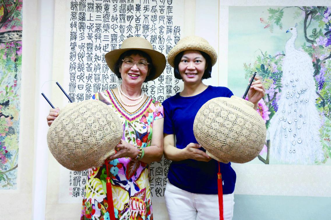 直至今日,仍有不少職人默默傳承藺草技藝,今年獲獎的林惠津堪稱國寶級神手,她自幼隨母親學習藺草編織,投入編織教學超過20年,這回帶領學生鄭雅娟利用三角藺草結合宮燈骨架,編織出古色古香的「圓形宮燈」,燈具點亮時,光影緩緩流轉,氛圍優雅而迷人。