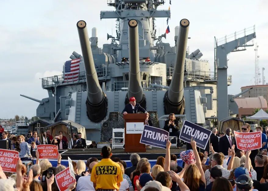应该说,特朗普此前就多次表达对于传统战列舰的喜好和对美军现役舰艇的不满。在他看来,近代战列舰称雄的那段日子,也是美国海军乃至美国国力蒸蒸日上的时代,象征着美国的强盛。因此早在2015年竞选总统期间,特朗普就专门挑选在“衣阿华”号战列舰的前主炮下举行竞选演讲。