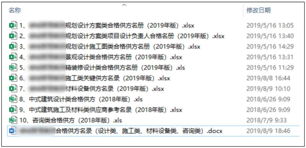 过往开发商体系内供应商入库名单
