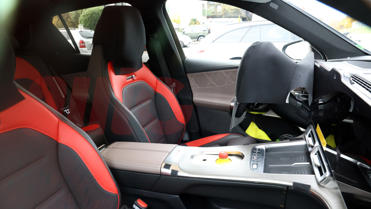 Fully extended, the active spoiler looks almost like the sort of airbrake found on a hypercar like the Bugatti Chiron, and it certainly grabs attention, which is necessary when a performance-focused EV can't rely on massive grilles or a set of four AMG exhaust tips. Notably, views of the development mule in motion reveal that when the spoiler is flush with the sloping roof, a vertically extending lip spoiler can also be deployed. Does this hint at active aero under the front bumper to balance the downforce? We'll have to wait and see, but it wouldn't be the first time that ideas seen on a Porsche 911 GT3 RS were adopted by other manufacturers.