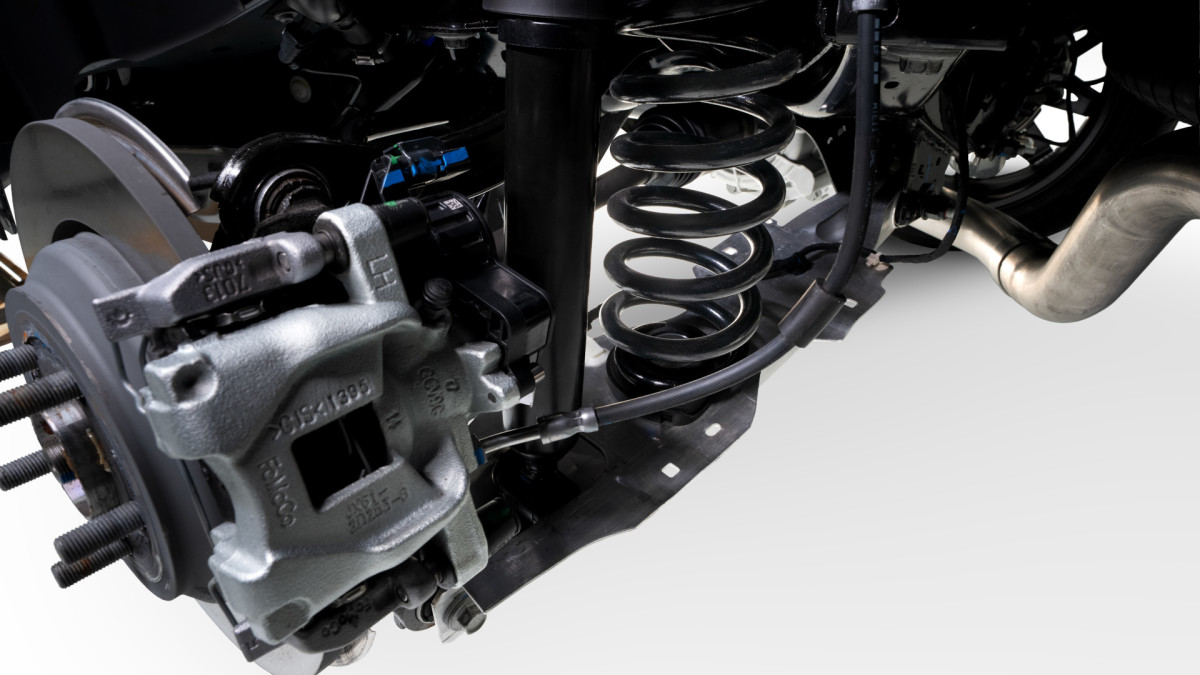 The Ford Performance upgrade is designed to be CARB-certified and 50-state legal, and to ensure it's reliable, too, a Mishimoto intercooler that's nearly 59% larger than stock has been added, reducing temperatures by 39.6% and pressure by just over 20%. A Borla exhaust adds a more aggressive tone, while ProCal 4 tuning keeps everything running smoothly. To help put the power down, Ford again raided its own parts catalog with a set of 20-inch wheels from the Mustang Mach-E GT, secured with black chrome lug nuts and wrapped in Michelin Pilot Sport 4S rubber. The customer kit will use Pirelli P Zero Elect tires, though.