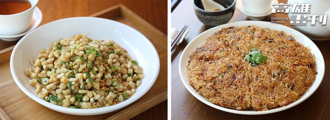 就連常見的炒米粉也有全新詮釋,米粉先炒後煎,以小火慢慢煸出香脆的鍋巴表層,內裡依舊濕潤彈牙不油膩,口感層次豐富。另一道「松子炒水果玉米」更是細膩地手工逐粒剝取玉米粒,搭配松子拌炒,堅果香氣與玉米清甜意外合拍,在舌尖留下清爽酥香。