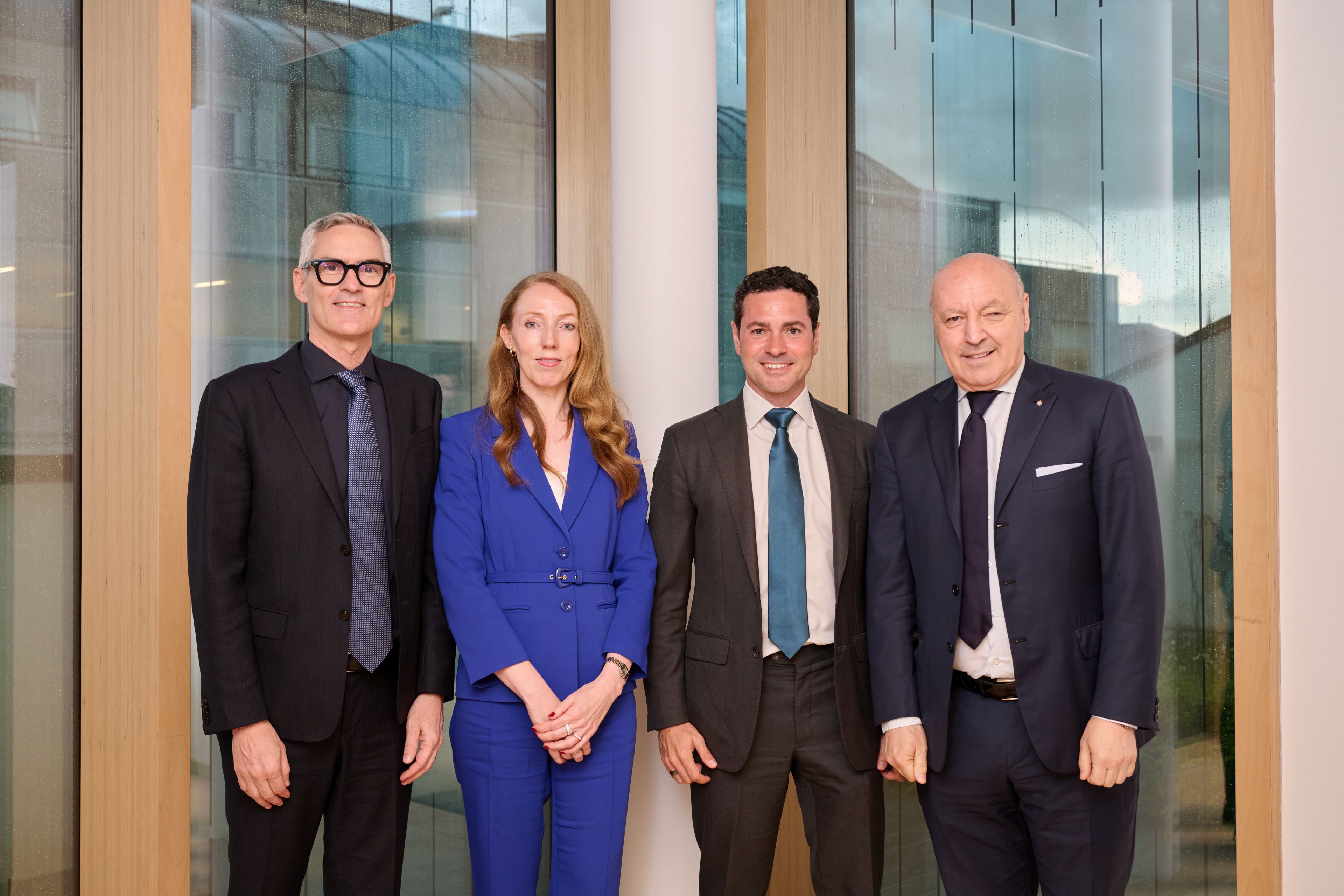 MILAN, ITALY – MAY 22: (L-R) CEO Corporate FC Internazionale Alessandro Antonello, Oaktree’s Global Opportunities strategy Managing Director Katherine Ralph, Managing Director and Co-Head of Europe for Oaktree’s Global Opportunities strategy Alejandro Cano, CEO Sport FC Internazionale Giuseppe Marotta attend a meeting between FC Internazionale new owners Oaktree and Club’s Management on May 22, 2024 in Milan, Italy. (Photo by Guido De Bortoli/Getty Images)