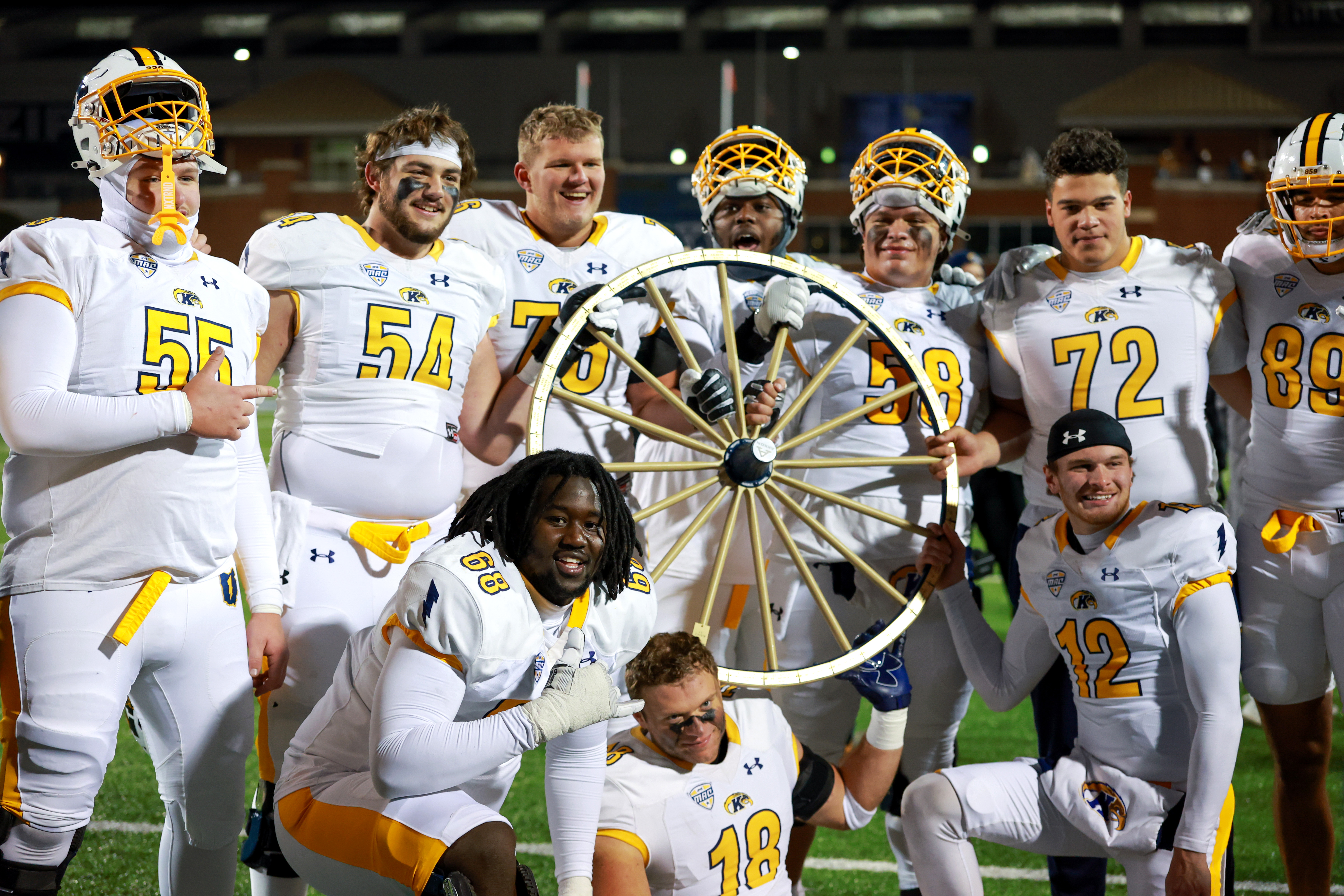 Tuesday night’s rivalry clash between the Kent State Golden Flashes and Akron Zips featured all the madness. There was a 21-0 second half scoring run, answered by an 18-point rally to force overtime. There were muffed punts, onside kick recoveries, Philly specials, and countless explosive touchdowns. It was MACtion in a nutshell and a rivalry at its finest. But in the end, Kent State recorded the game-winning overtime stop in a 42-35 shootout, with its entire roster racing the distance of the field to claim its beloved Wagon Wheel and plant it at the 50-yard line of its archenemy’s playing surface.
