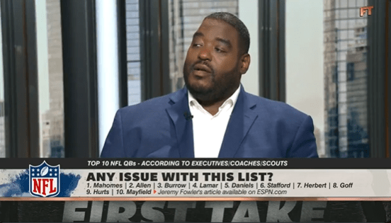 “Super Bowl MVP at No. 9, and you’ve got Justin Herbert at seven,” the former guard said on First Take.