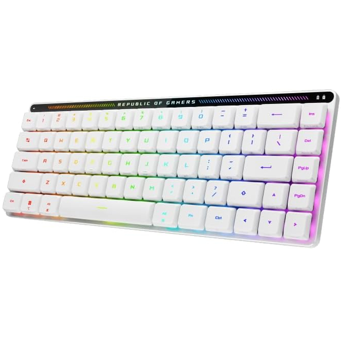 Key specs: 75% | ROG NX Snow linear switches | Aluminium chassis | OLED screen