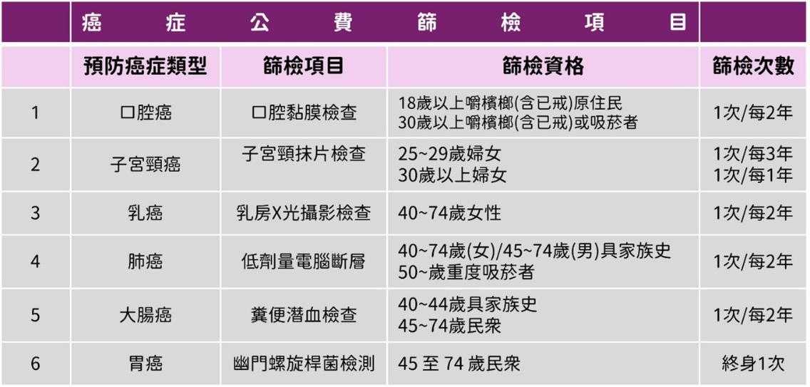 為加強防治,衛福部國民健康署自115年起,將胃癌納入公費癌症篩檢體系,成為第六項公費癌篩項目。45至74歲民眾可享「終身一次」免費幽門螺旋桿菌檢測(如:糞便抗原檢驗),若結果為陽性,可經醫師安排除菌治療,有助降低慢性胃炎與胃癌發生風險。