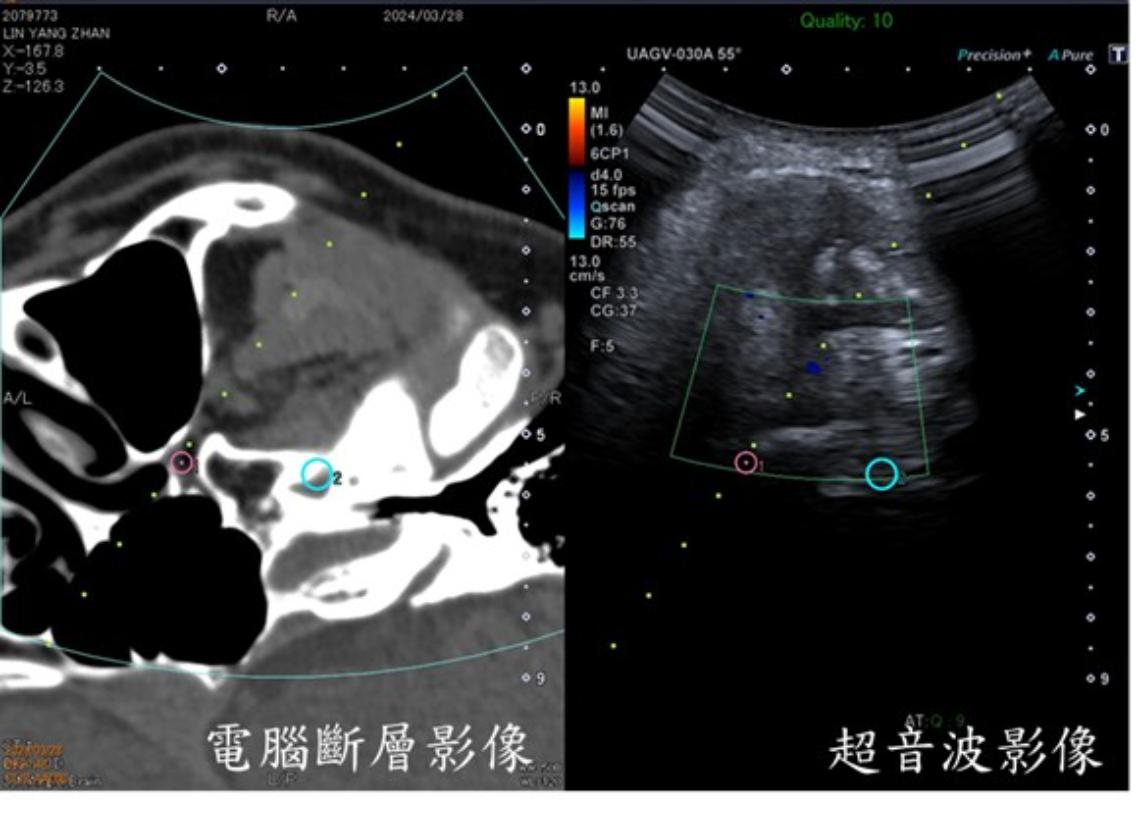 為克服上述困境,三總團隊引入中高階超音波儀器,搭載CT-US影像融合系統,讓術中影像「動起來」,成為目前國內少見的治療技術。