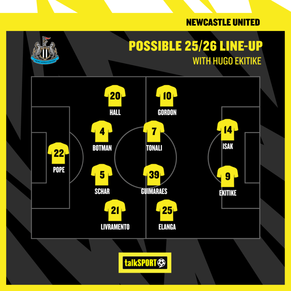 The potential arrival of Ekitike is with a view for him to play alongside Toon hero Alexander Isak in attack next season.