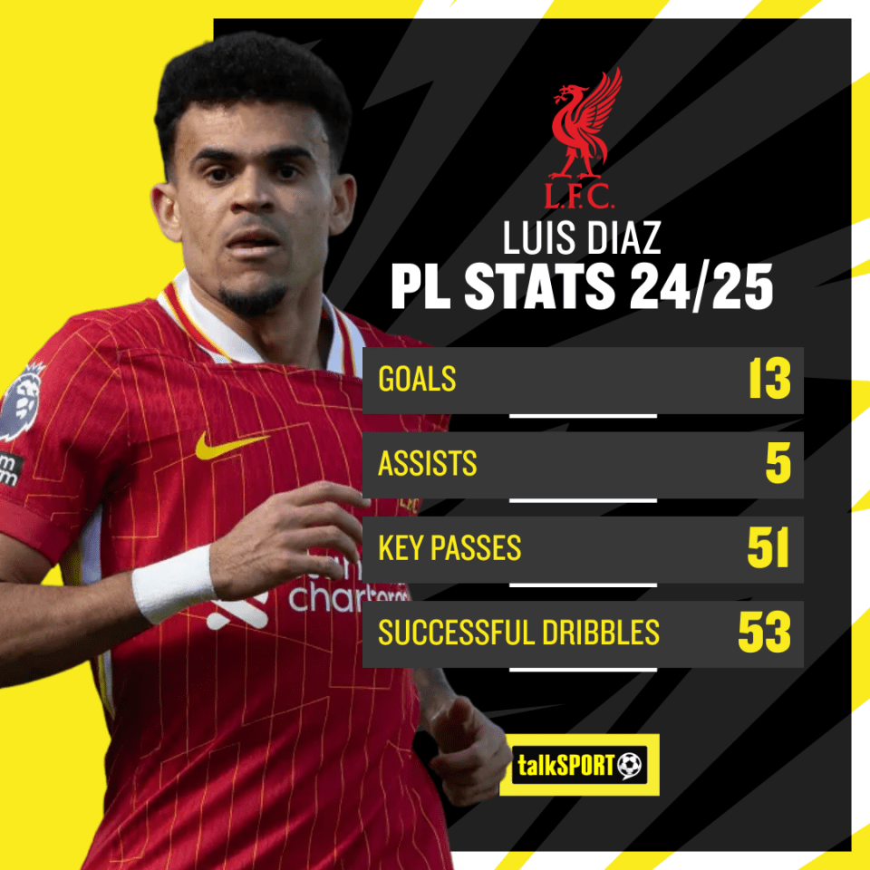 The Colombian moved to Merseyside from Porto in 2022 and had his most productive campaign last time out with 17 goals and five assists in all competitions, plus a Premier League winner’s medal.