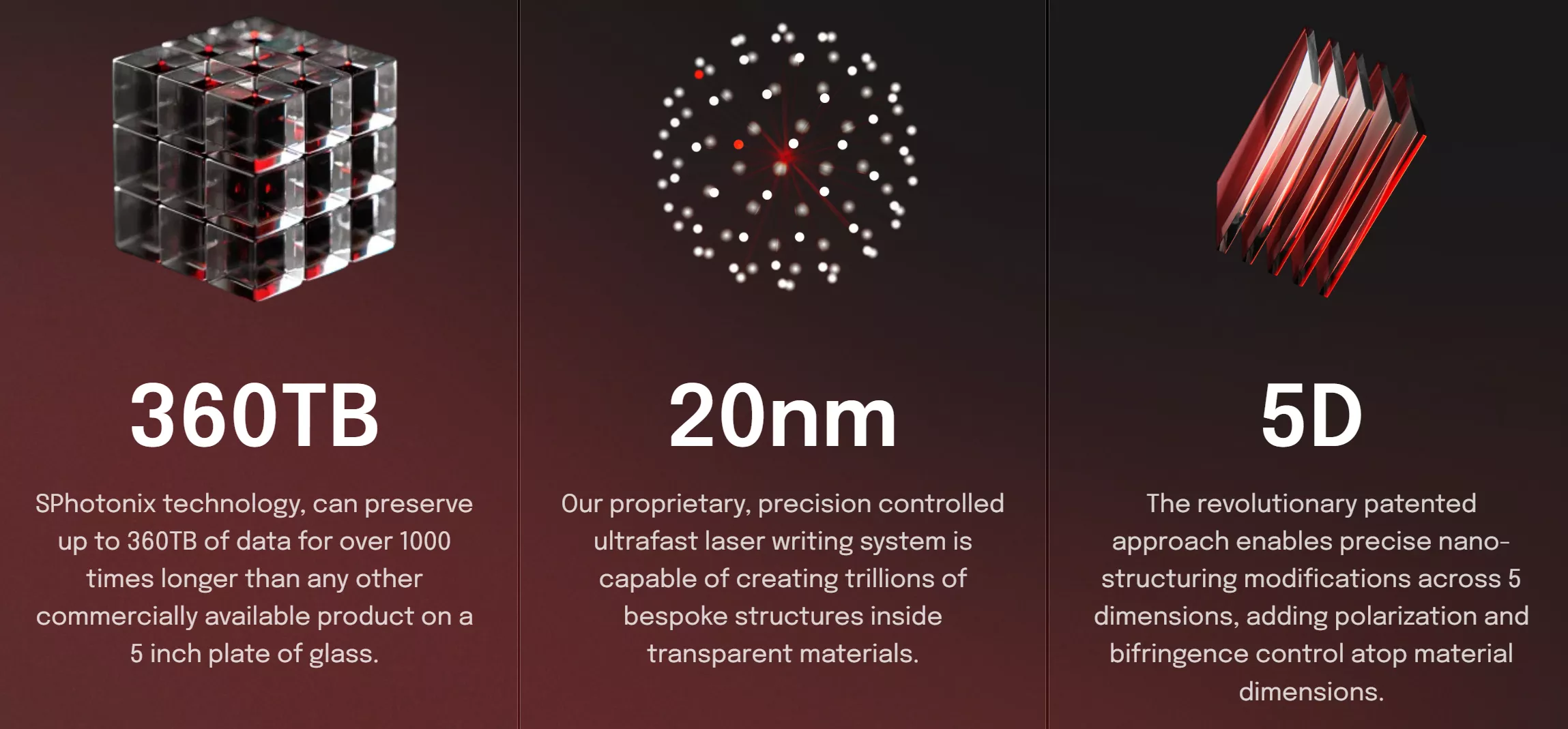 目前,该技术的写入速度为4MBps,读取速度为30MBps,SPhotonix计划未来3-4年内将读写速度提升至500MBps,以对标归档磁带、光盘等备份系统。
