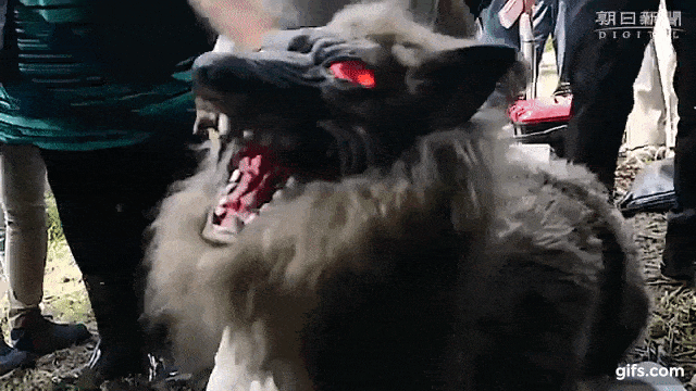 仅从外观上来评判,日本北海道太田精机公司推出的“怪物狼”做得相当粗糙。身形和真狼差不多大,外面也披着皮毛(防水的),但脑袋上却长着一张怪异而狰狞的脸,塑料感很强,双眼通红,怒目圆睁,还有一口尖牙。