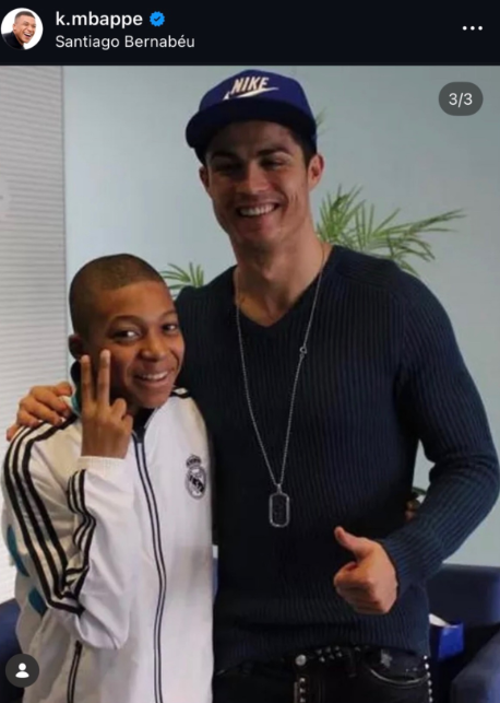 After the match, Mbappé made a post on Instagram with photos of his celebration, the caption "Believe in your dreams, champ!" and an image that has now become iconic: a very young 13-year-old Kylian together with Cristiano Ronaldo. The occasion was a multi-day trial at Valdebebas with Real Madrid, which ultimately did not result in a transfer.