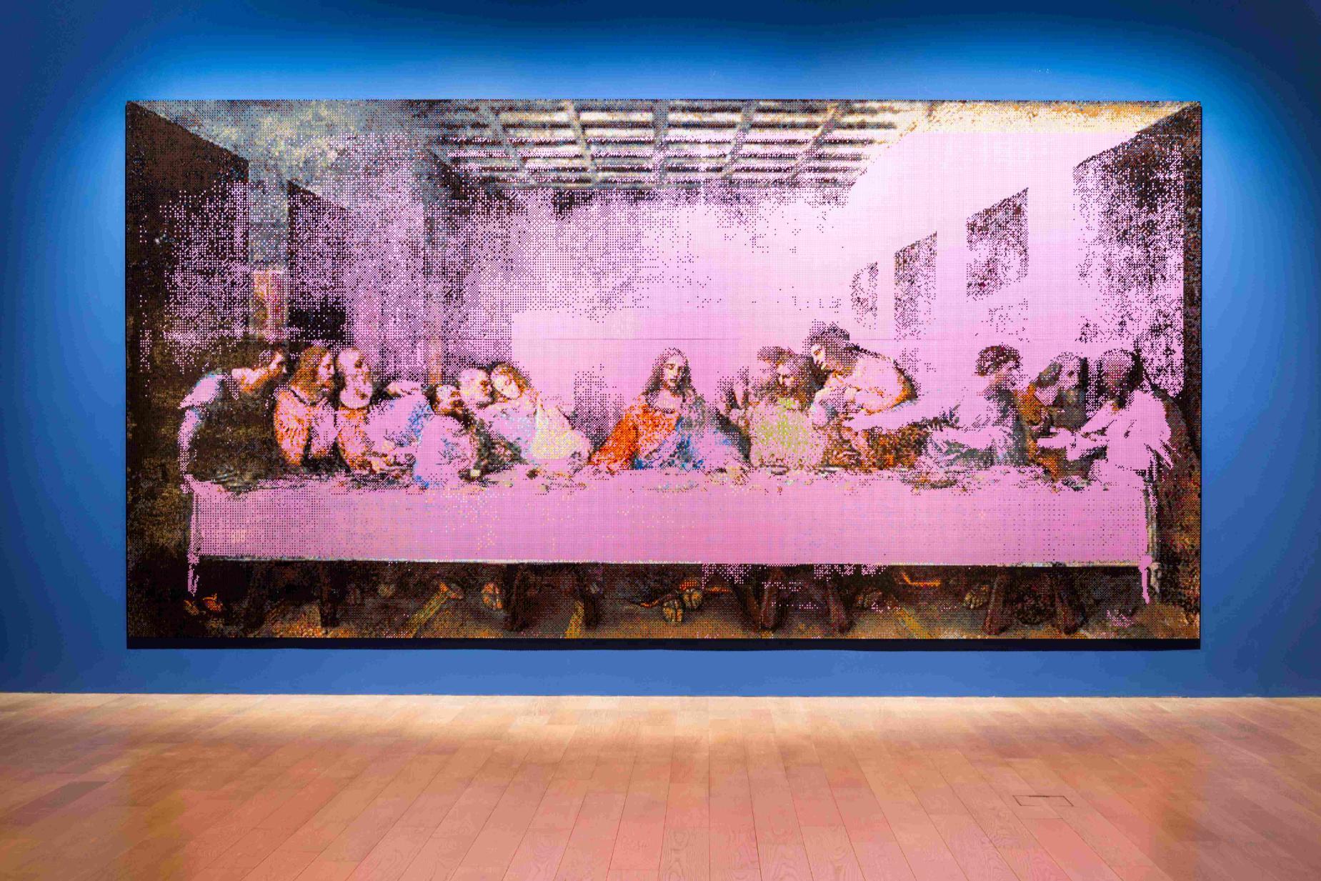 艾未未以經典宗教壁畫為原型,運用 37 萬個樂高積木打造近 7 米寬的《最後的晚餐(粉紅)》(The Last Supper in Pink)(圖片來源/富邦美術館)