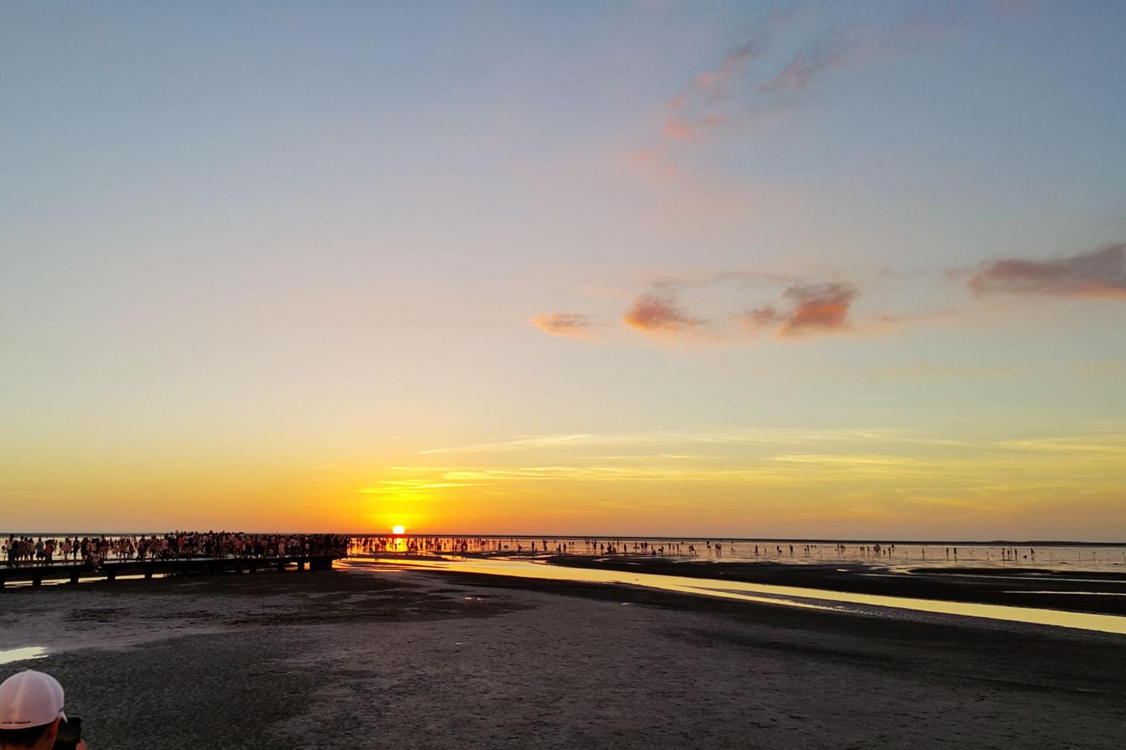 當夕陽灑落在水面上,整片濕地彷彿化作一面巨大的鏡子,映照出雲彩與人影,被譽為「台版天空之鏡」,也入選全球七大天空之鏡之一。走在木棧道上,可以看到彈塗魚、招潮蟹在泥地裡穿梭,遠處還有候鳥覓食的景象,高美濕地不僅浪漫,也是一處重要的生態保護區。