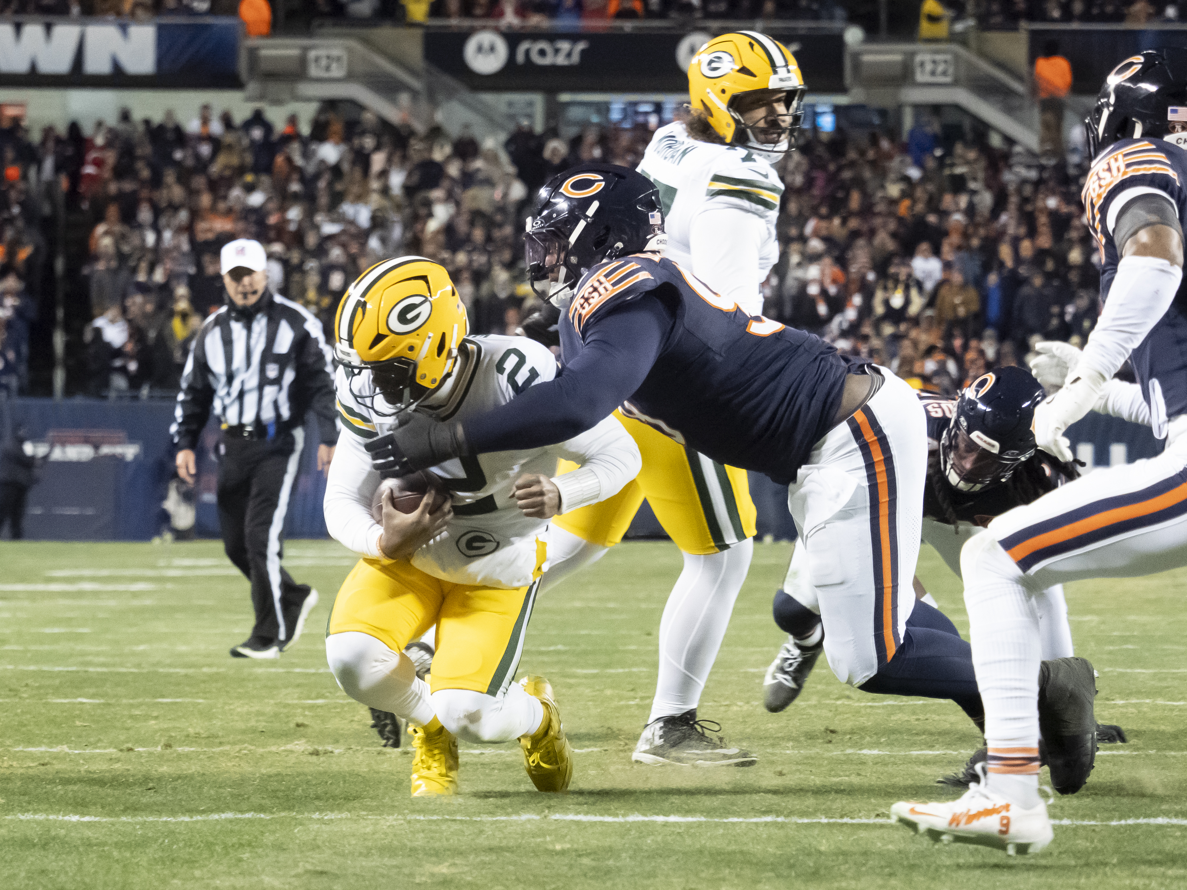 Emmanuel Wilson outpaced Josh Jacobs in the wild Saturday night game, and ran well in the process (14-82). Jacobs’s knee ailment is clearly hampering him, and Wilson should continue to get meaningful touches for the Pack this week.