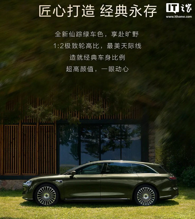 IT之家 7 月 17 日消息,享界汽车官方昨日晚宣布,鸿蒙智行首款旅行车享界 S9T“秋天见”,新车将首发仙踪绿车色、搭载全新星云尾灯,拥有 1:2“极致轮高比”。