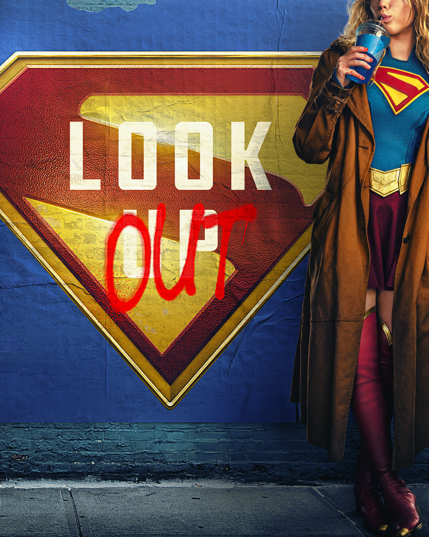 IT之家注意到,DC 电影官方微博昨日晚公布了电影《超级少女:明日之女》首张海报,展示了超级少女卡拉・佐-艾尔的正面服装造型:经典金发造型、身披黄色风衣、内着经典战衣制服。另外海报显示,卡拉正喝着一杯蓝色饮品,手上带有些许血渍,预计刚经历一场战斗并获得了胜利。