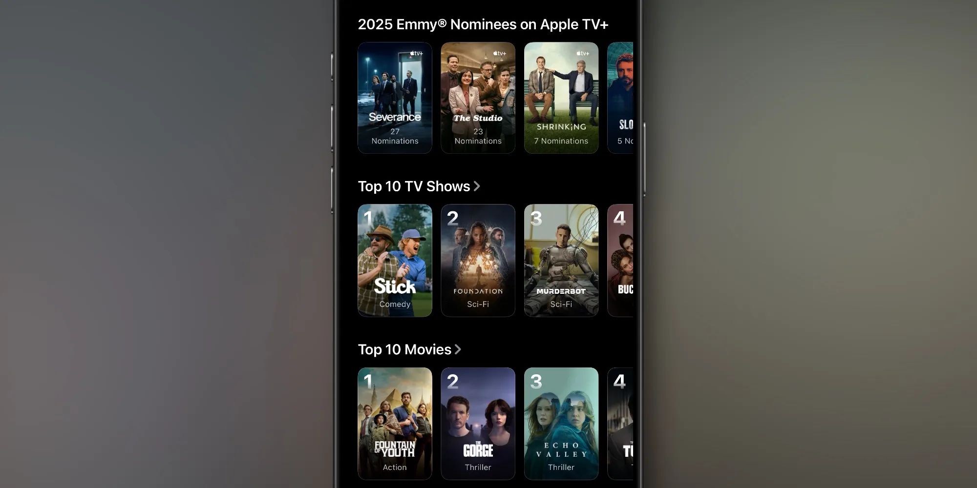 在新设计下,iOS 26 和 tvOS 26 上应用可以一次展示更多电视剧和电影,进一步提升了内容密度。