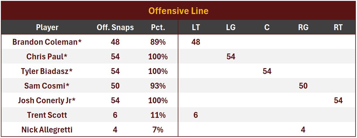 After the opening kickoff, there was not really much for Commanders’ fans to get excited about. But for those readers who are still paying attention, here is your weekly dose of who played where and who did what in the Commanders’ 18-29 home loss to the Philadelphia Eagles.