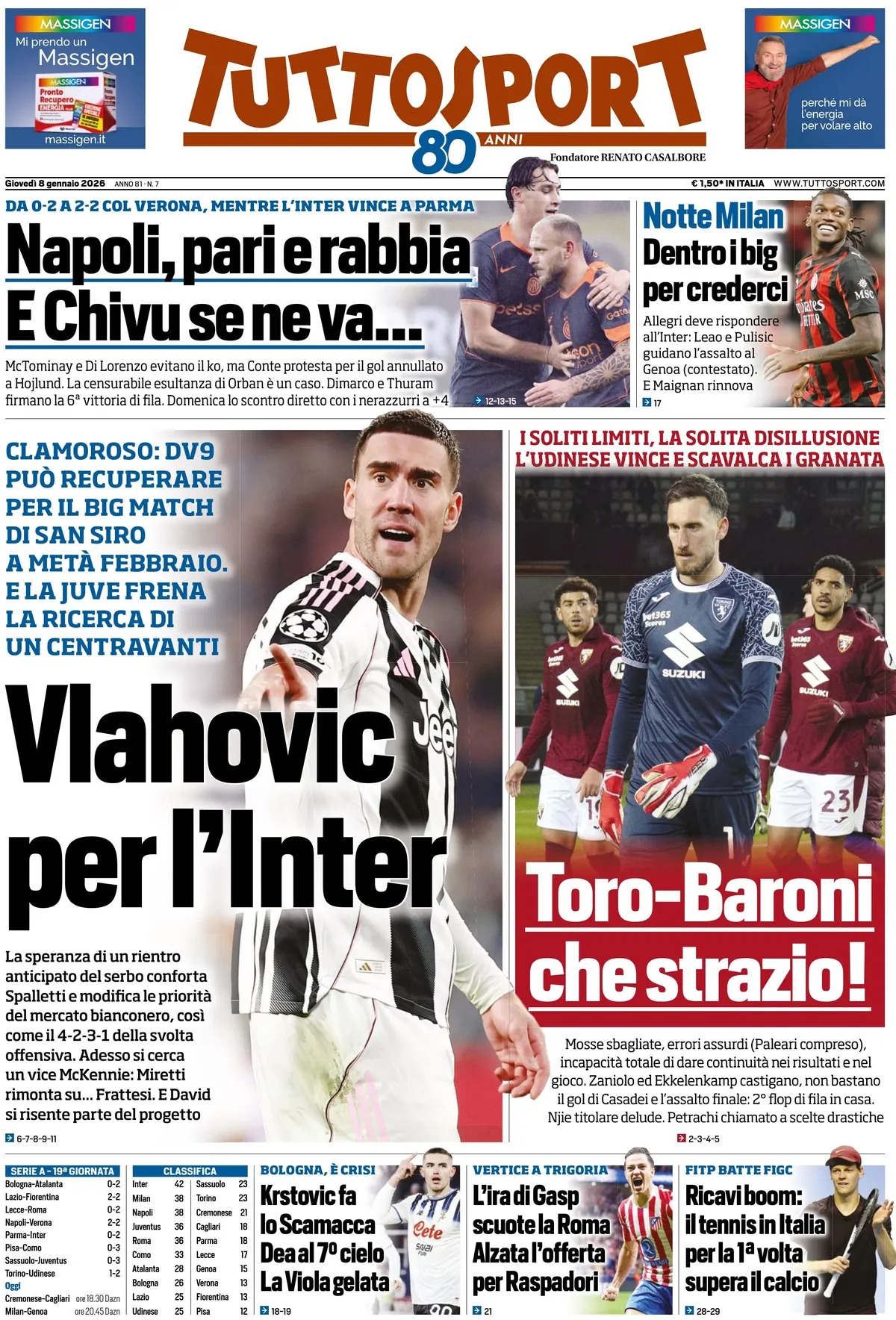 Incredible: DV9 can recover for the big match at San Siro in mid-February. Juventus block the search for a striker.