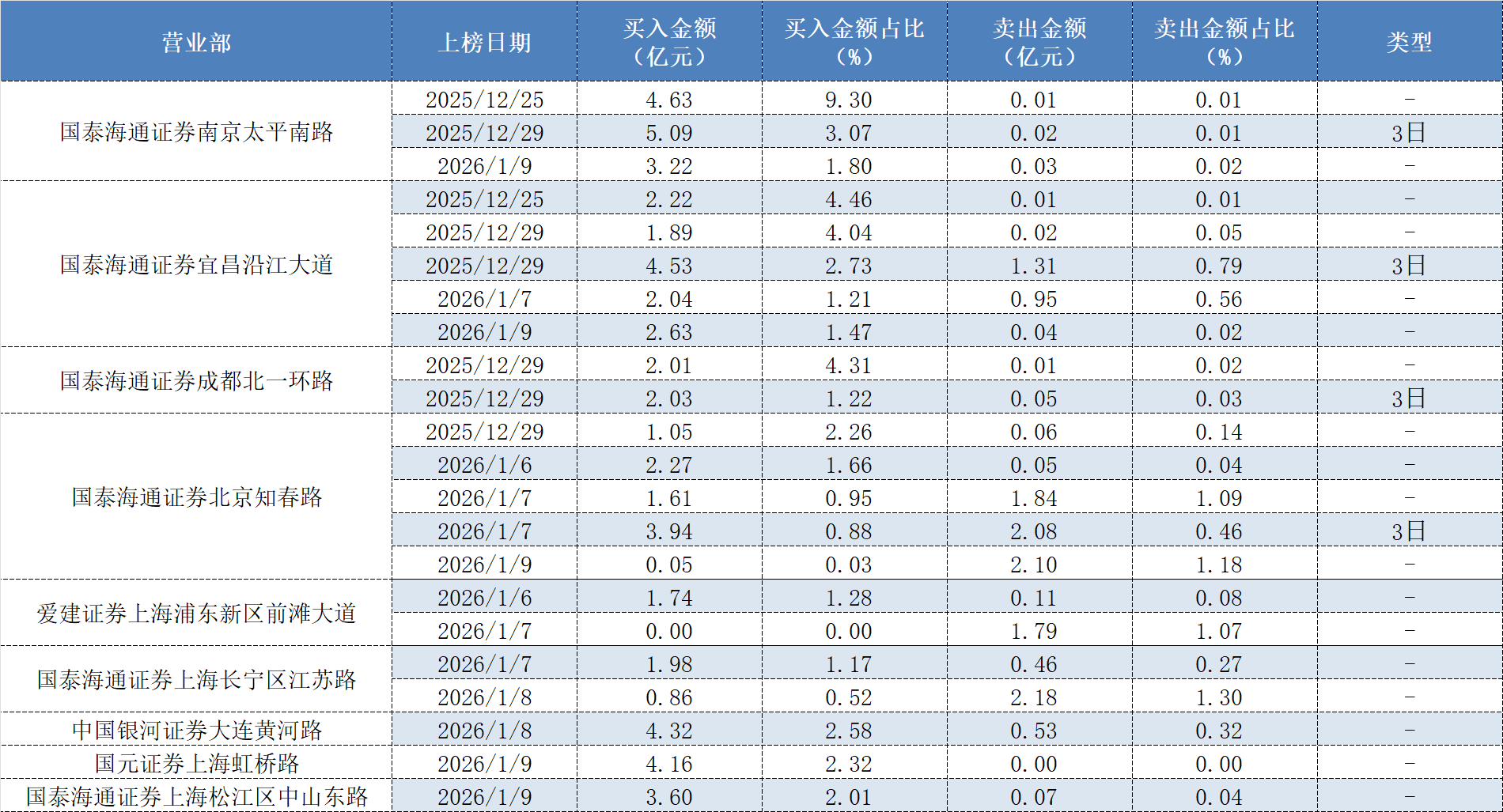 早在2025年12月25日金风科技涨停时,上述两大游资的常用席位国泰海通证券南京太平南路和国泰海通证券宜昌沿江大道就分别居于该股龙虎榜买方第一和第二位,买入金额分别高达4.63亿元和2.22亿元。