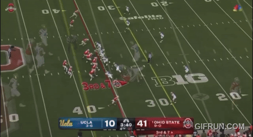 With that out of the way, let’s get into Kienholz as a prospect. The Cards are getting a very athletic quarterback who adds to the playbook with his ability to use his legs. LK (I’m trying it out) can make plays throwing the ball on the run, and he can run the read option and handle RPO calls. His arm strength is still to be seen, but I clipped a play below that is a true “NFL throw” from the opposite hash.