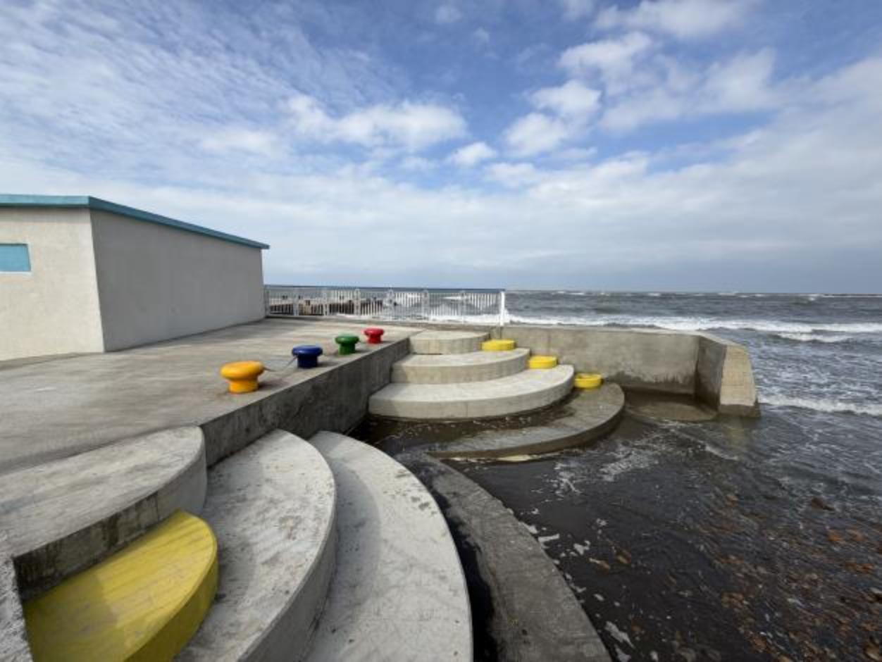 為提升新竹縣濱海遊憩設施品質,新竹縣政府交通處辦理鳳坑濱岸遊憩區服務設施整備工程,近日第二期工程完工,除了增設停車場、淋浴區等服務設施,提升便利性,更以紅豆餅意象,新設圓弧型親水階梯及綠蔭植栽等拍照打卡新景點,讓遊客眼睛為之一亮。新設施已於1月8日啟用,期待吸引更多遊客前來旅遊,欣賞新竹縣濱海美麗風光。