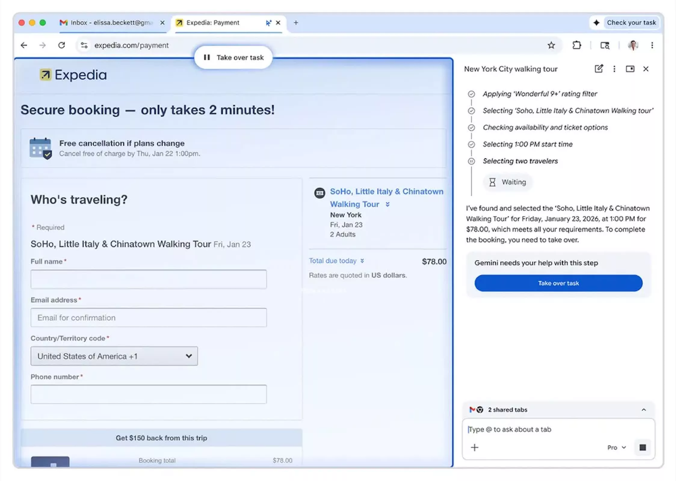 Google表示,Auto Browse 是其向“代理式 AI”(agentic AI)迈出的最重要一步之一,这类系统可以通过具备上下文理解能力的推理,对用户界面进行自动化操作。 当前,该功能处于预览阶段,仅向付费用户开放,包括 AI Pro 和 AI Ultra 订阅方案,并基于最新一代 Gemini 3 模型运行,其架构受到Google早期实验性代理框架 Project Mariner 的影响。