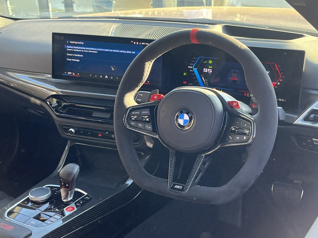 The cabin is just as focused. Weight-optimized M Carbon bucket seats trimmed in Merino leather and Alcantara, complete with red “CS” logos, make it feel special the moment you climb in. A flat-bottom Alcantara steering wheel and carbon fiber trim make it even more worthy of the CS badge. iDrive 8.5 comes standard, along with BMW’s M Drift Analyser and Lap Timer. Visually, the M2 CS looks the part with its exposed carbon roof, oversized ducktail spoiler, and aggressive rear diffuser. And while modern cars rarely sound as raw as their predecessors, the optional M Performance titanium exhaust makes for an exciting soundtrack.
