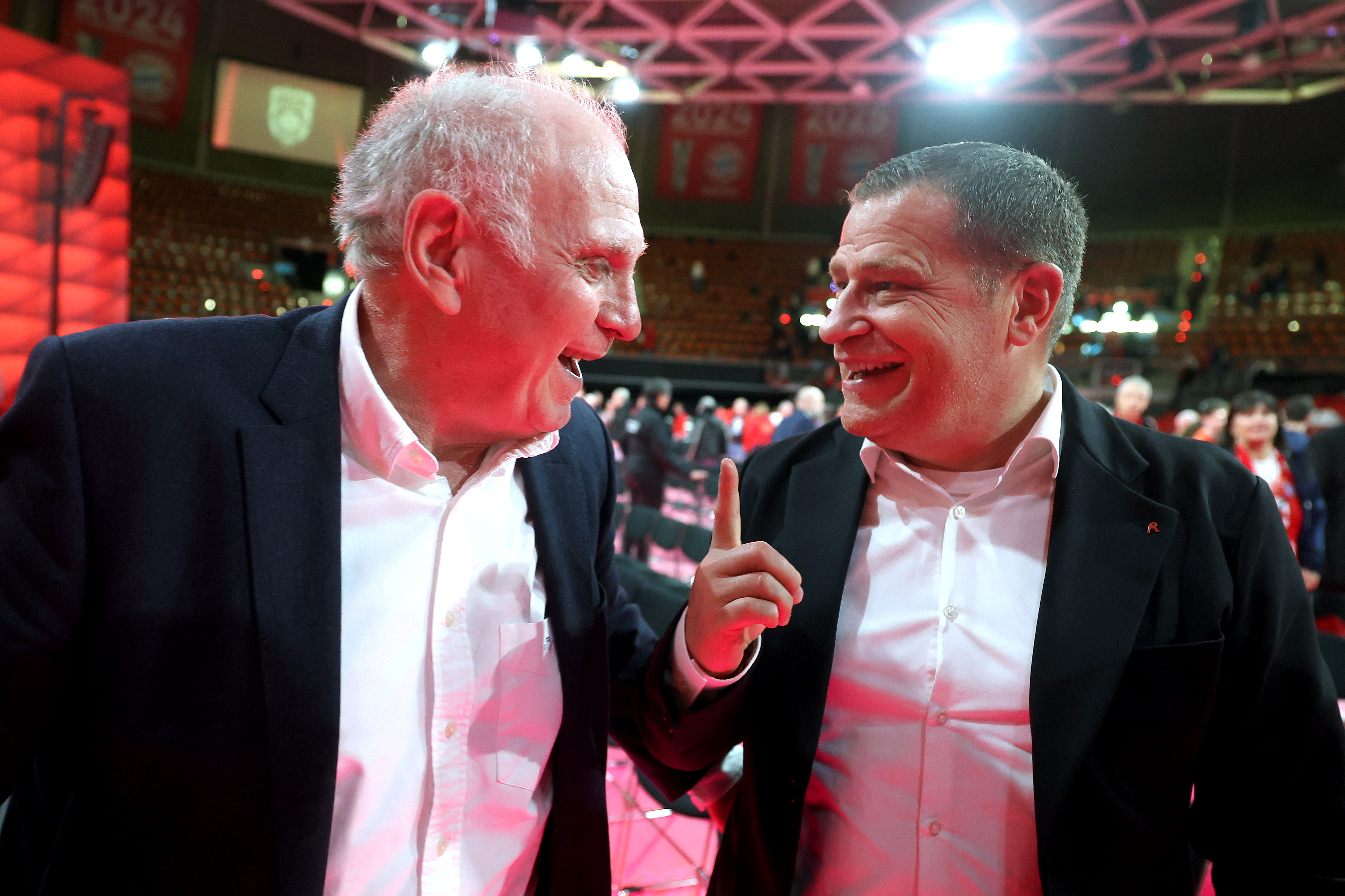 MUNICH, GERMANY - NOVEMBER 02: Uli Hoeness, Honorary President of FC Bayern München attends with Max Eberl, Sporting Manager and Board member for sport of FC Bayern München the annual general meeting of football club FC Bayern Muenchen at BMW Park on November 02, 2025 in Munich, Germany. (Photo by Alexander Hassenstein/Getty Images) | Getty Images