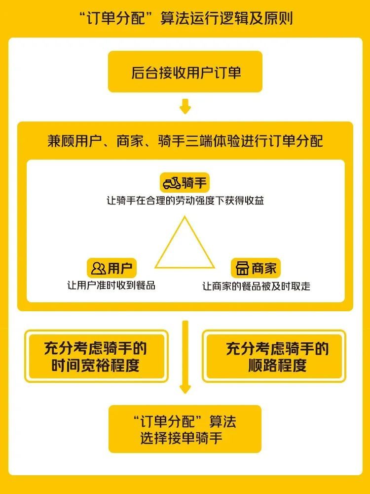 “外卖网络上的几方利益——商户、骑手、平台、用户,四方需要找到一个巧妙的平衡点,大家才能互相满意,但让四方满意是很难很难的。”
