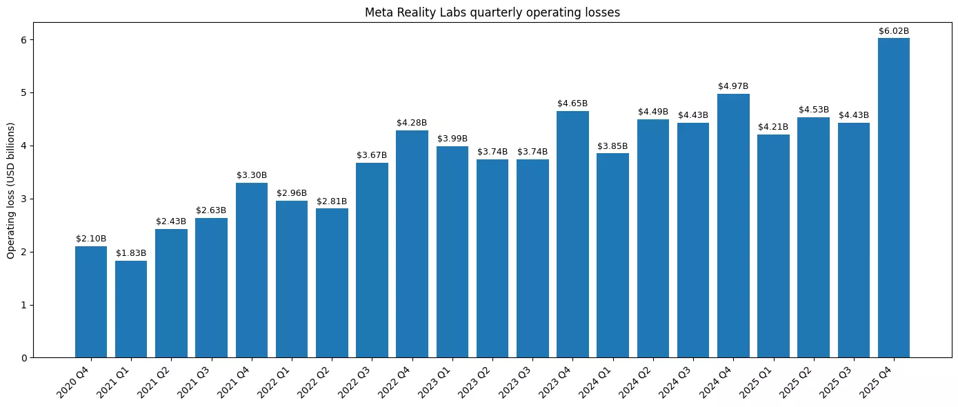 从财务表现看,Reality Labs的处境同样不容乐观。 最新财报显示,该部门录得成立以来“最差季度”业绩,季度亏损同比扩大21%,达到60.2亿美元,自2020年以来累计亏损已至少达到800亿美元。 在这种背景下,业界开始质疑扎克伯格当年将公司从“Facebook”更名为“Meta Platforms”的重大决策是否仍然合理。