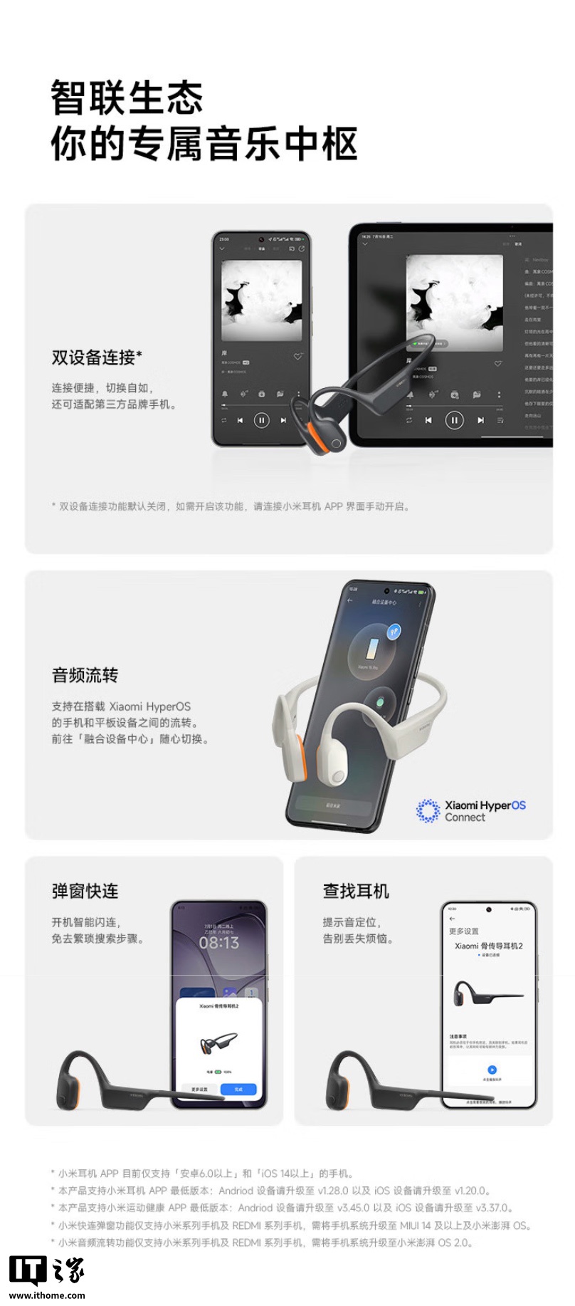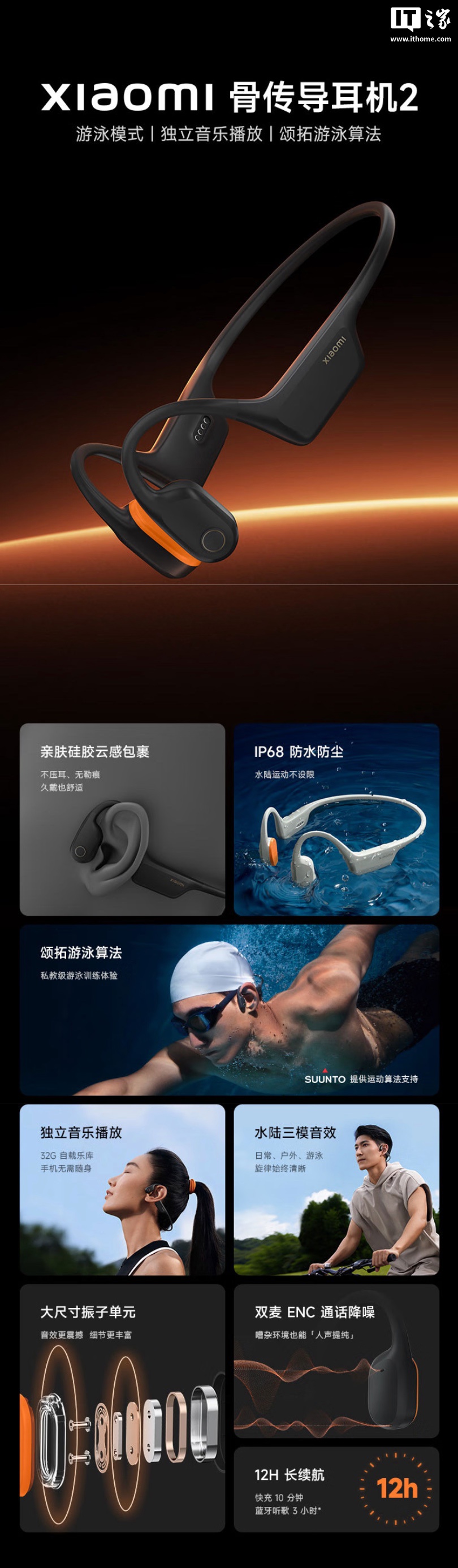 IT之家 7 月 20 日消息,小米骨传导耳机 2 现已在京东上架并公布了完整的规格信息,该耳机主打“游泳模式、独立音乐播放、游泳算法”,定价为 699 元,将于明天 10 点首销。