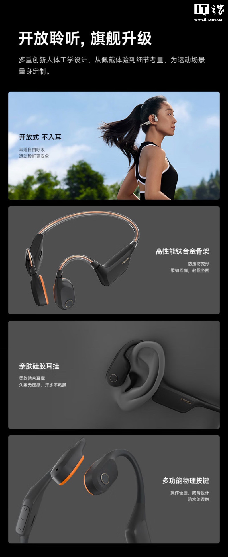 IT之家获悉,这款耳机采用开放式设计,可选黑白双色,匹配亲肤硅胶材质,支持 IP68 防水(可在 5 米水深使用),耳机带有多功能物理按键,支持快捷切歌,耳机内置电池提供至高 12 小时续航。
