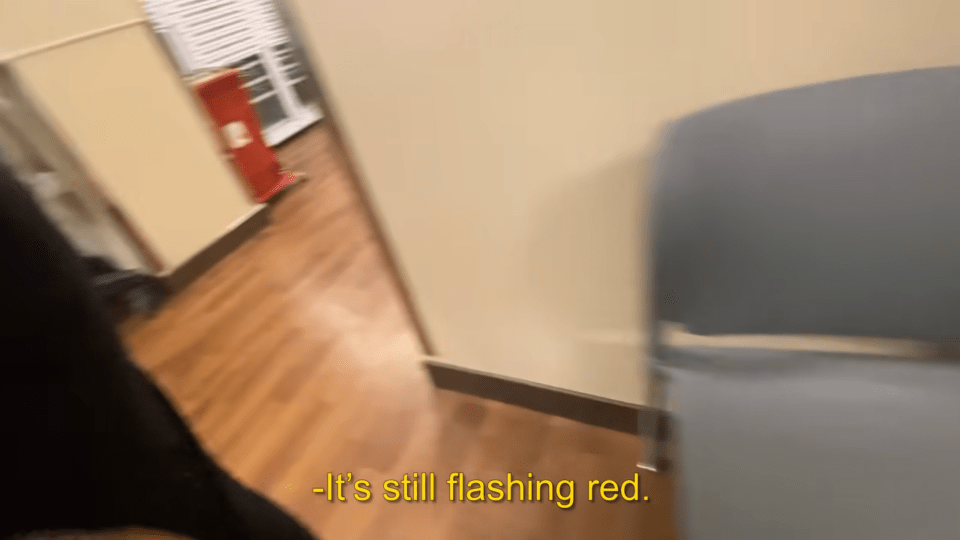 A member of staff is then heard saying: “You have to turn that off, I’m sorry… It’s still flashing red.”