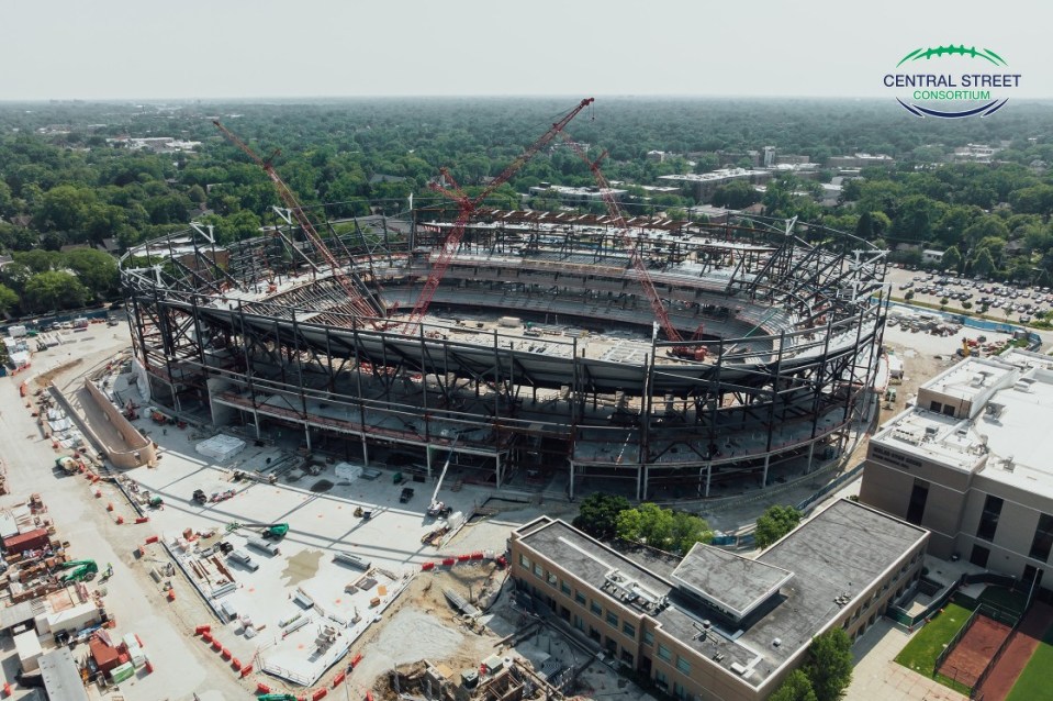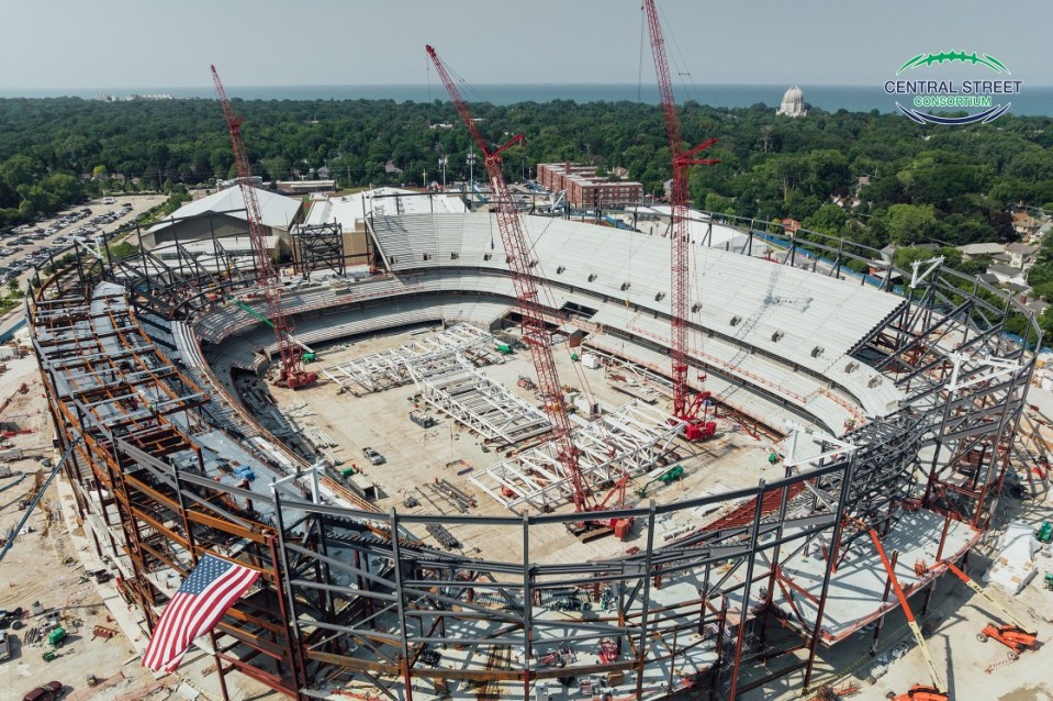 Northwestern’s new era is taking shape, and steel beams now outline the upper bowl, while the interior levels are filling out to provide a clearer vision of the expansive sightlines all around the stadium.