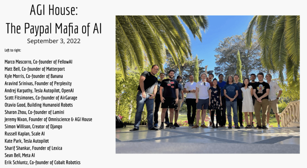 虽然明显不如希尔斯伯勒豪宅那么奢华,但旧金山的 AGI House 已经培养了谷歌云、几家独角兽 AI 初创公司和埃隆马斯克 xAI 的联合创始人等知名支持者。
