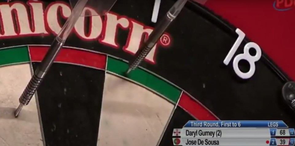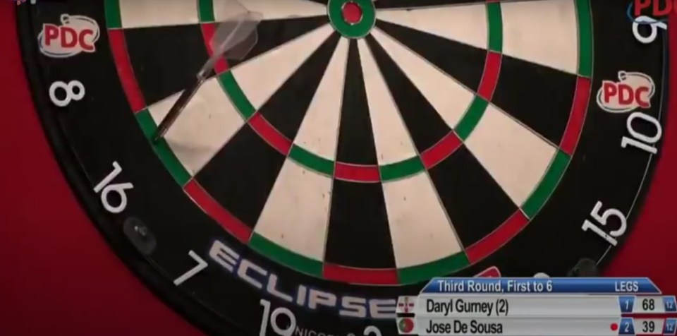 De Sousa was then left to hit double one to secure the leg – which is often considered to be the most difficult to hit on the board.