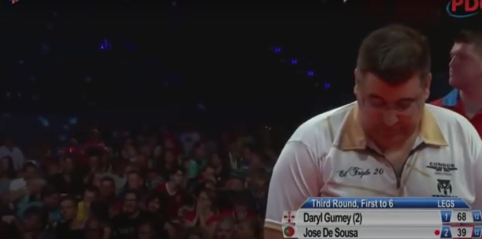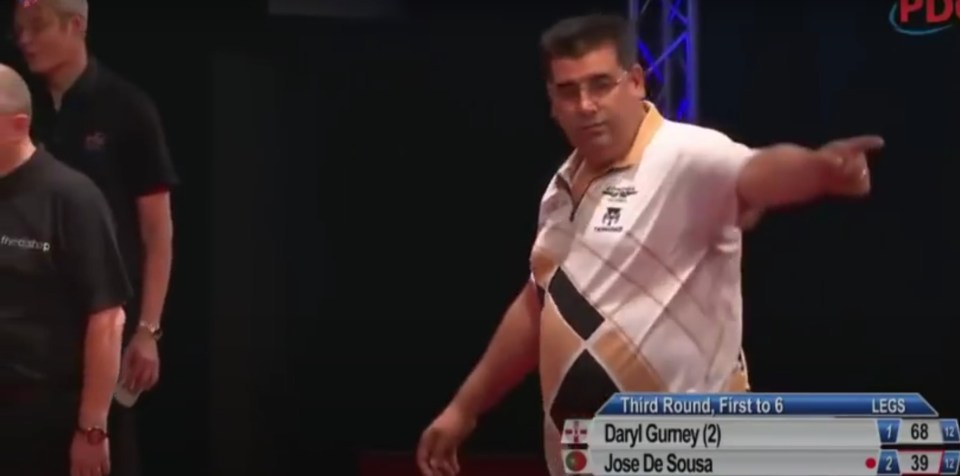 In what become known as the ‘De Sousa way’, he attempted three double 20s instead of hitting treble 20, single 20, double 20, where he missed with his first effort before hilariously going bust.
