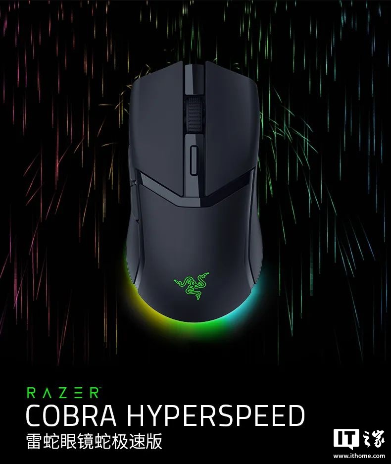 IT之家 7 月 22 日消息,雷蛇今晚发布了一款眼镜蛇极速版鼠标,售价 799 元起。