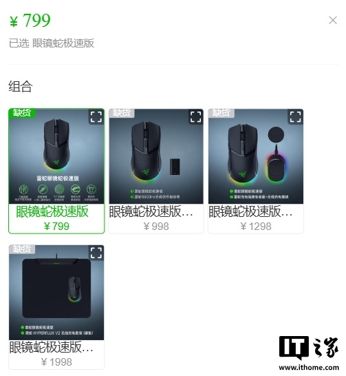 IT之家查询雷蛇官方小程序商城获悉,雷蛇眼镜蛇极速版鼠标官方标价为 799 元起: