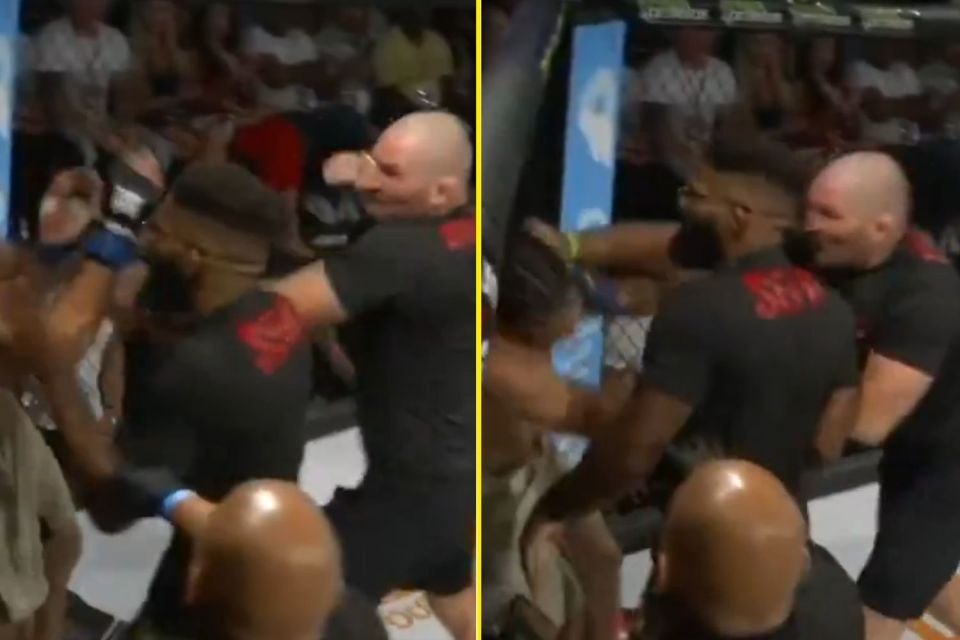 This prompted Strickland, 34, and fellow UFC fighter Chris Curtis to enter the cage and make a beeline for the undefeated fighter.