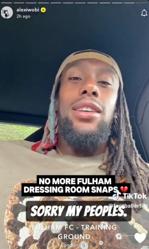 Alex Iwobi says Fulham have stopped him from posting behind the scenes changing room footage on Snapchat.