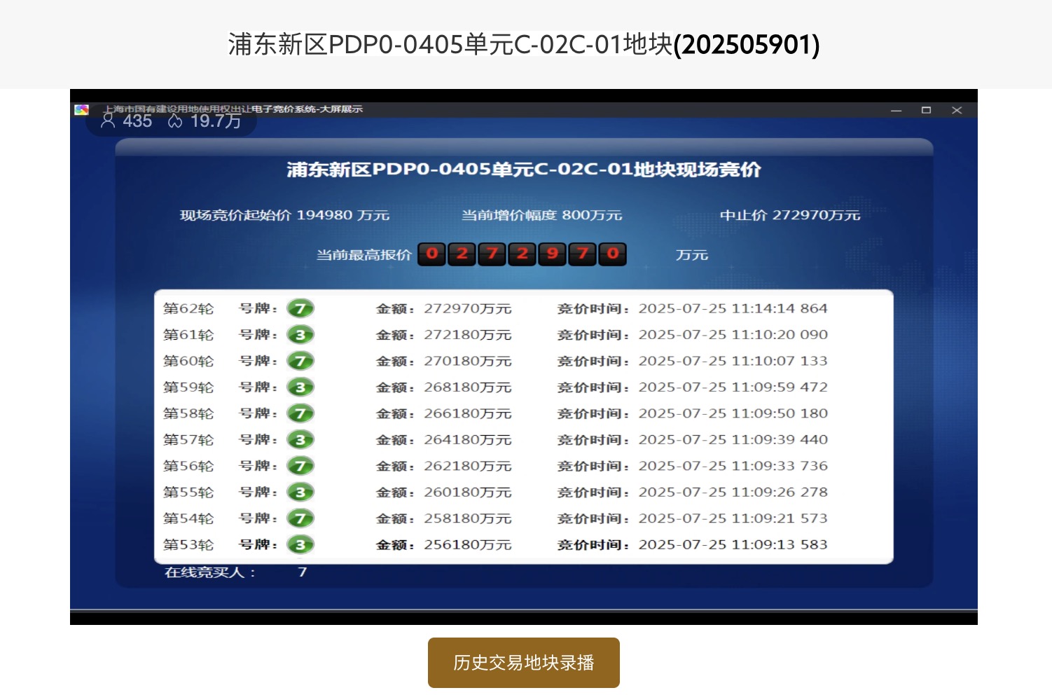 如市场意料,25日的上海土拍热度创下新高。上午首先出让的是浦东唐镇地块和虹口北外滩地块,都迎来7位竞买人参拍。